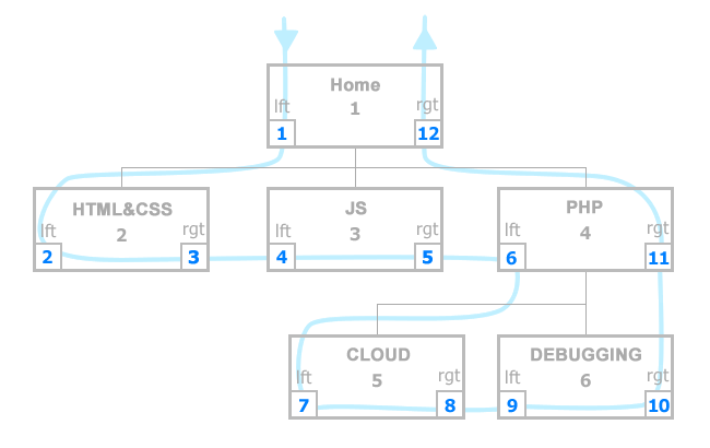此文中,修改左右数值是使用sql实现,但是在初始化的时候,需要大量执行sql语句,短期间会造成数据库压力,所以现把数据读到内存中,然后计算左右数值,最后报存到数据库 https://www.werc.cz/blog/2015/07/19/nested-set-model-practical-examples-part-i