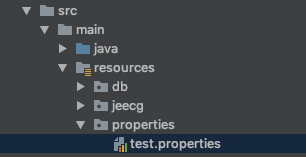 InputStream in = this.getClass().getResourceAsStream("/properties/test.properties");
