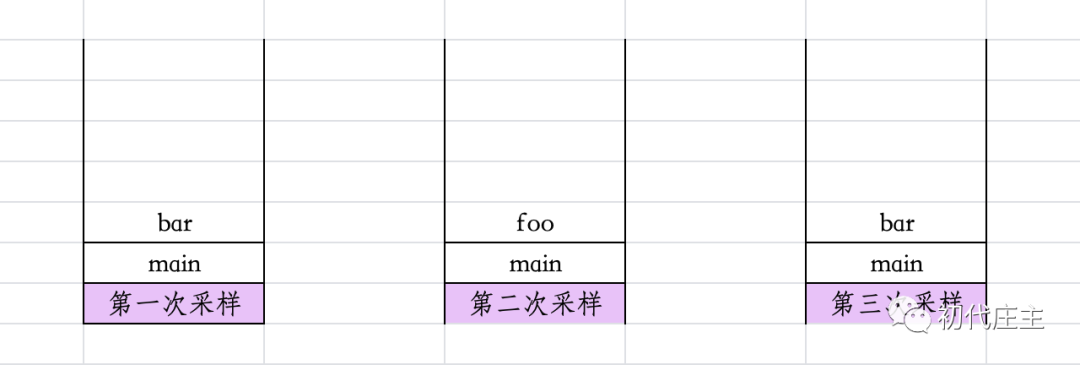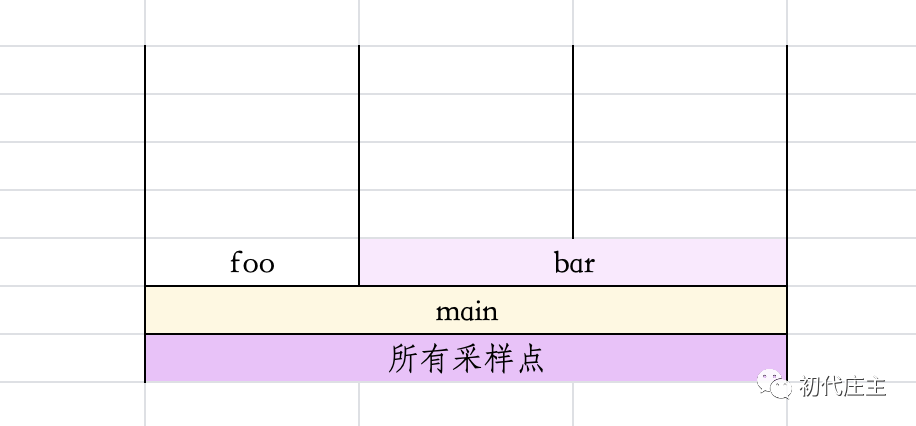 有好长一段时间,兴趣爱好都落在了程序性能观测这个领域。之所以有兴趣,一来是解决一下工作中的问题,在这平淡的生活中寻找一丝快乐;二来也是想以史为鉴,以后在自己的代码里尽可能不要犯同样的错。 当局者迷,会体现在生活中的方方面面,正如写程序的人不知道程序的哪个函数会成为热点一样,我以前上来就是一张火焰图,也没有交代这个怎么得来的,现在准备把这一块补一下。 火焰图可用来分析程序中的热点函数,找出那些执行耗时比较长的函数(大多数情况下这些函数是性能问题的根源所在),为后面的代码优化指明方向。 要想讲清楚这个(火焰图),目前没有想到合适的方法;如若把我走过的弯路和正道都讲一遍,就认识而言也算得上比较全面了。 扯远了,要讲的毕竟不是什么屠龙之术。trace 是要真刀真枪干的,还是先把环境搞起来。看下面这段 cpp 我就用它做原型了。 程序的逻辑非常直接, main 函数会不断地调用 foo 和 bar 这两个函数。其实仔细看 foo 和 bar 的逻辑几乎一样,foo 会给 j 赋值 1k 次,而 bar 会给 j 赋值 2k 次。如果说 foo 的开销是 1 那么 bar 的开销就应该是 2 ,整个 main 的开销差不多就是 3 。 把程序编译安装到 /usr/bin/fires 后面这个程序就是我的实验环境了。注意这个安装路径我们会在后面的 trace 里面用到它。 前面的分析得知,如果说 main 函数运行了 3s ,那么应该是有 1s 花在了 foo 函数上,有 2s 花在了 bar 函数上。至于是不是这个比例还要用数字说话,这个数据确认起来也相对简单,我们只要把程序运行起来把各个函数的耗时统计一下,就行了。 可以看到当程序运行起来之后它自己独占了一个核,并且把这个核心跑到了 100% 。 统计 foo | bar 函数的执行耗时,这里我就直接用 ebpf 来追踪,foo 函数的耗时统计代码如果。 foo 的耗时统计(追踪了 9s ,发现 foo 总共执行了 3.2s ) bar 的耗时统计(追踪了 6s ,发现 bar 总共执行了 4.1s) trace 的结果,基本上和分析源码得出来的结论差不多。foo 的开销大概是总时间的 1/3 ,bar 的开销大概是总时间的 2/3 。也就是说我们通过 trace 看到了程序执行中最为耗时的调用 “bar 函数”。 对于一个像 MySQL 这么大的项目我们不可能,每一个函数都去 trace 来发现问题,这么做的工作量就太大了。 数学啊!它有时能把复杂的事情搞简单,如果我们不想全量 trace 的话,我们可以像《统计学》一样抽样啊! 函数的调用在计算机里面是通过压栈来完成的,一个函数执行完成之后就会从栈中弹出,对于我们这个程序的函数调用栈只有以下两种可能。要么它在执行 foo ,要么它在执行 bar 。 如果我们在程序运行的过程中,去抽样&统计函数调用栈各个情况和它的占比,只要样本数据够多,执行 foo 的情况差不多会占 33.3%,执行 bar 的情况差不多会占 66.6%. 这能说明什么呢?你去采样了 100 次,有 66 次是 bar 占着 cpu 在干活,说明主要的耗时就在 bar 这个函数上呀。如果有办法把 bar 运行时间降下来,那节约的是时间,提升的是性能。在想到解决办法之前,更加重要的一步是发现问题的根源,火焰图可以帮我们发现这类问题。 如果在这里直接上火焰图的话,那就是忘了初心了。现在我打算用 excel 手工一步步把画火焰图画出来,假设我们采样了 3 次,那么我们的结果有可能是像下面这样的。 三个分裂的图,这样不够直观。现在处理一下把它合成一张图,在整理的过程中,还要尽可能把同一个函数多个样本点放在一起;在这里我把两个 bar 合并在一起。 一个手工用 excel 搞的火焰图就这样出来了。 关于火焰图怎么看 第一步:从下往上看,找到最宽的那条,它就是主要矛盾。如果看不出什么问题,不要留恋,我们要再往上看。 第二步:重复第一步,直到看到了最上面。 蒋乐兴-初代庄主概要